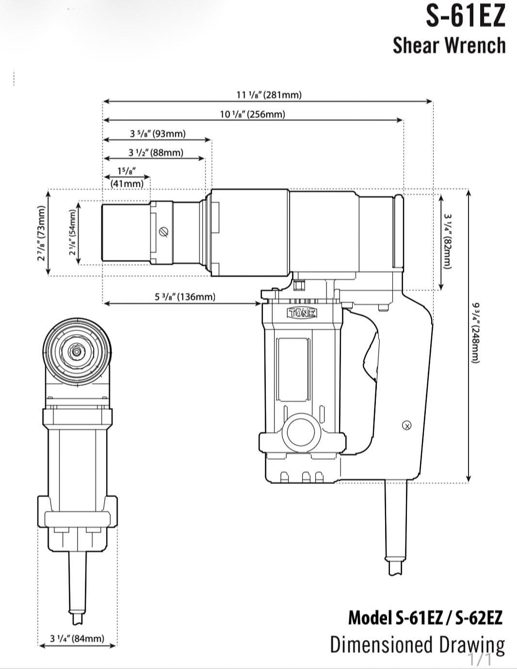 Pistola para Instalación de tornillo tensión controlada modelo S-61EZ para 5/8, 3/4 y 7/8