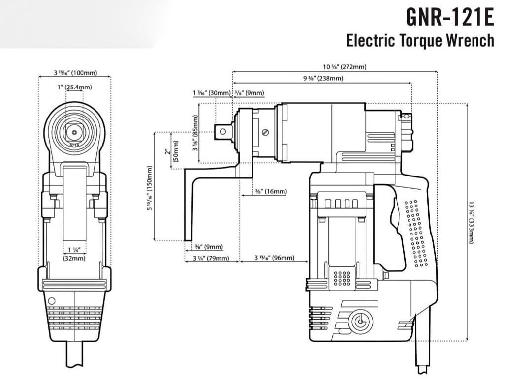 Pistola para Instalación de tornillos Hexagonales modelo GNR121E en A325 de 3/4", 7/8" y 1" pulgada. en A490 de 3/4" y 7/8" de pulgada.