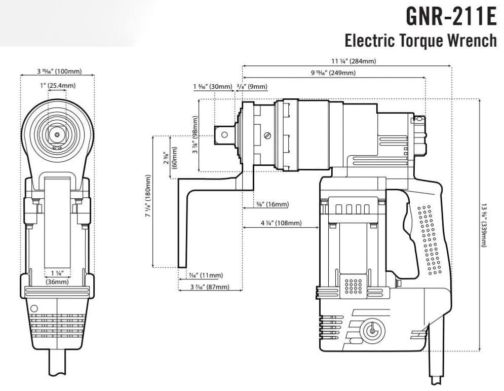 Pistola para Instalación de tornillos Hexagonales modelo GNR211E en A325 de 1", 1 1/8" y 1 1/4" de pulgada. en A490 de 7/8", 1" y 1 1/8" de pulgada.