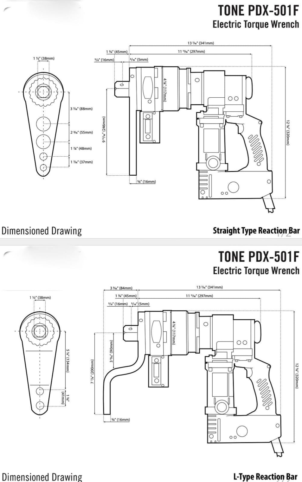 Pistola para Instalación de tornillos Hexagonales modelo PDX 501F en A325 de 1 1/4"y 11/2" pulgadas. en A490 de 1 1/8" y 1 1/2" pulgadas.